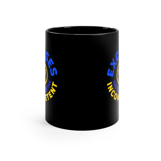 Excuses Mug Blue + Gold on Black
